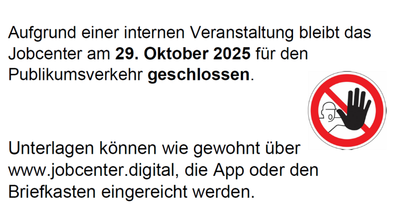 Unterlagen können wie gewohnt über www.jobcenter.digital, via App oder den Briefkasten eingereicht werden.